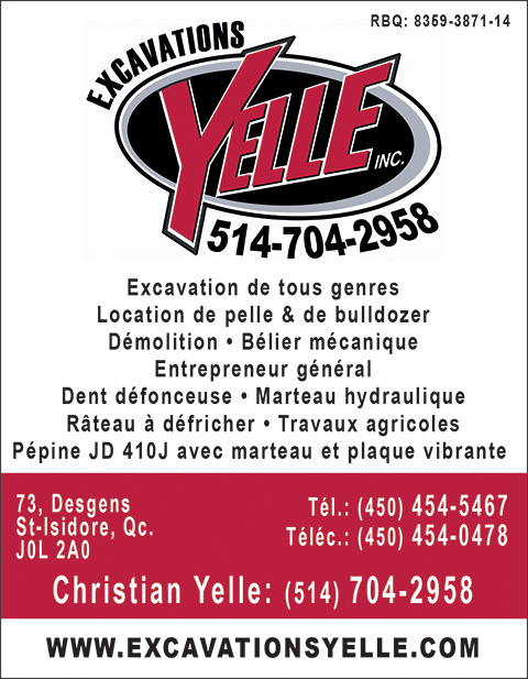 EXCAVATIONS YELLE INC | Hébergement et Réalisation : Optilog Informatique inc. | Construction411.com